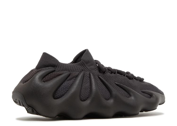 The adidas Yeezy 450 ‘Utility Black’ tempers its unconventional design language with a stealthy one-note finish. The lightweight build utilizes a one-piece black knit upper, secured with lace closure and a stretchy, sock-like cuff. A color-matched PU-injected midsole wraps up the sides and heel, delivering a supportive fit with a one-of-a-kind aesthetic. Underfoot, the contoured outsole features grooved lines for superior traction.