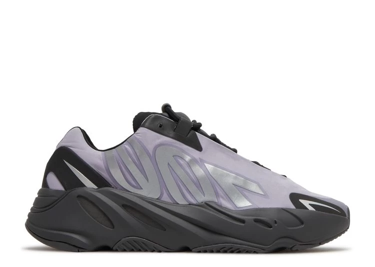 The adidas Yeezy Boost 700 MNVN βGeodeβ gives the lifestyle silhouette a pastel makeover. A soft lavender hue is applied to the polyester textile upper, secured with no-tie bungee laces and fortified with no-sew overlays. On the lateral side panel, oversized β700β branding shines in metallic silver. Lightweight cushioning is provided by a full-length Boost midsole, housed with a sculpted polyurethane carrier. Underfoot, a herringbone-traction rubber outsole delivers superior grip.
