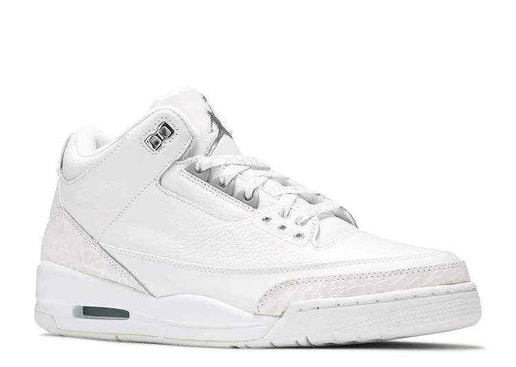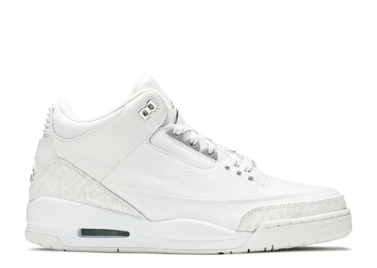 The Air Jordan 3 cemented itself in basketball history when Michael Jordan wore it during his victory in the 1988 Dunk Contest—the very event that inspired the Jumpman logo. When it dropped in 2007, the Retro ‘Pure Money’ delivered a clean take on the 1988 OG, dressing it in all-white with metallic detailing on the lace eyelets. The classic elephant print appears on the toe panel and heel.