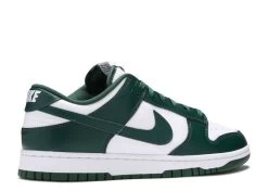 The Nike Dunk Low ‘Michigan State’ delivers a low-top version of the Michigan State Dunk from 2020. Like its predecessor, the shoe features a two-tone all-leather upper rendered in classic ‘Be True to Your School’ color blocking. A stark white finish is contrasted by a dark green Swoosh and matching overlays at the toe and heel. Standard Nike branding hits decorate the heel and nylon tongue. The low-top is mounted on a durable rubber outsole, complete with a traction pattern originally developed for the hardwood.