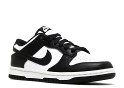 The Nike women’s Dunk Low ‘Black White’ also known as ‘Panda’ highlights classic color blocking on a vintage silhouette originally released in 1985. The all-leather upper features a crisp white base with contrasting black overlays and a matching black Swoosh. Nike branding lands on the heel tab and woven tongue tag in keeping with the sneaker’s OG aesthetic. The low-top is supported by a durable rubber cupsole, equipped underfoot with a basketball-specific traction pattern.
